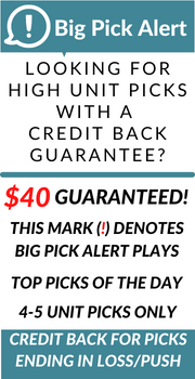 If you're interested only in the top picks released by the Documented Handicappers rated 4 or 5 units, than the Big Pick Alert plays are your choice. Our Big Pick Alert plays are our premium picks that come with a credit back guarantee!